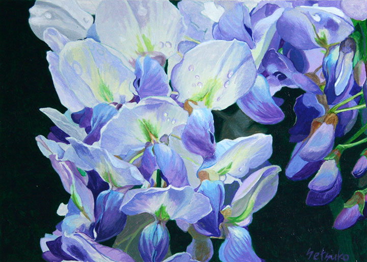 I have never seen so many wisterias other than in South Carolina. When I am driving in spring, I go into the wisteria wonderland. Their flowers are so beautiful that I had to paint them. When the wisteria season is over, then the serious flower season will start and I will live in my back yard. Oh, how I love spring!