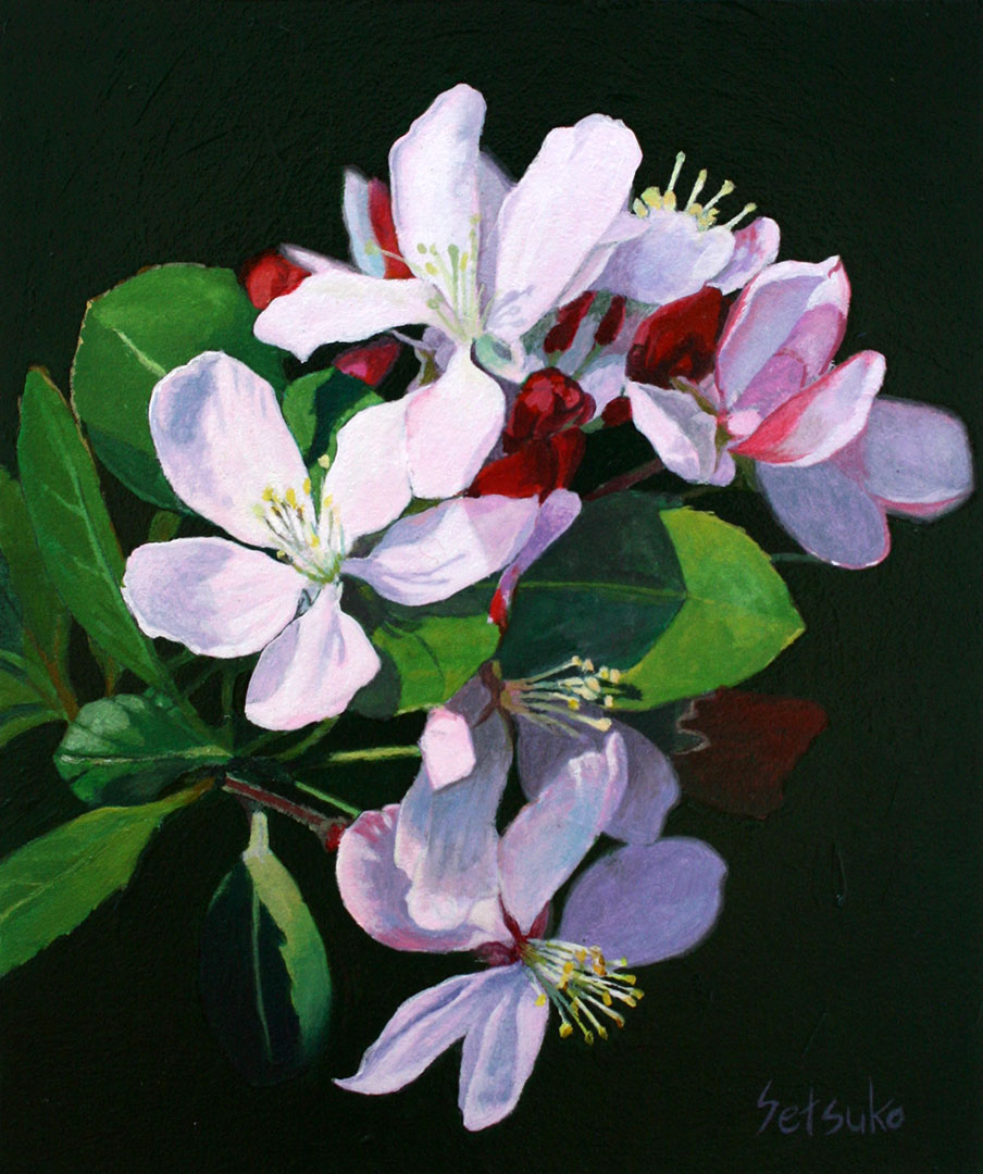 This painting looked ok when I saw the actual painting. But on screen those flower pedals look like plastic sheets. Since I started to paint the larger size painting with the apple flowers today, I need to work on the textures and edges. When I work with acrylic, the edges becomes a major problem. It is quite hard or almost impossible to mix the colors on the paper surface. Creating the effect of soft edges becomes one of the big challenges for me. See what will happen in my next work.