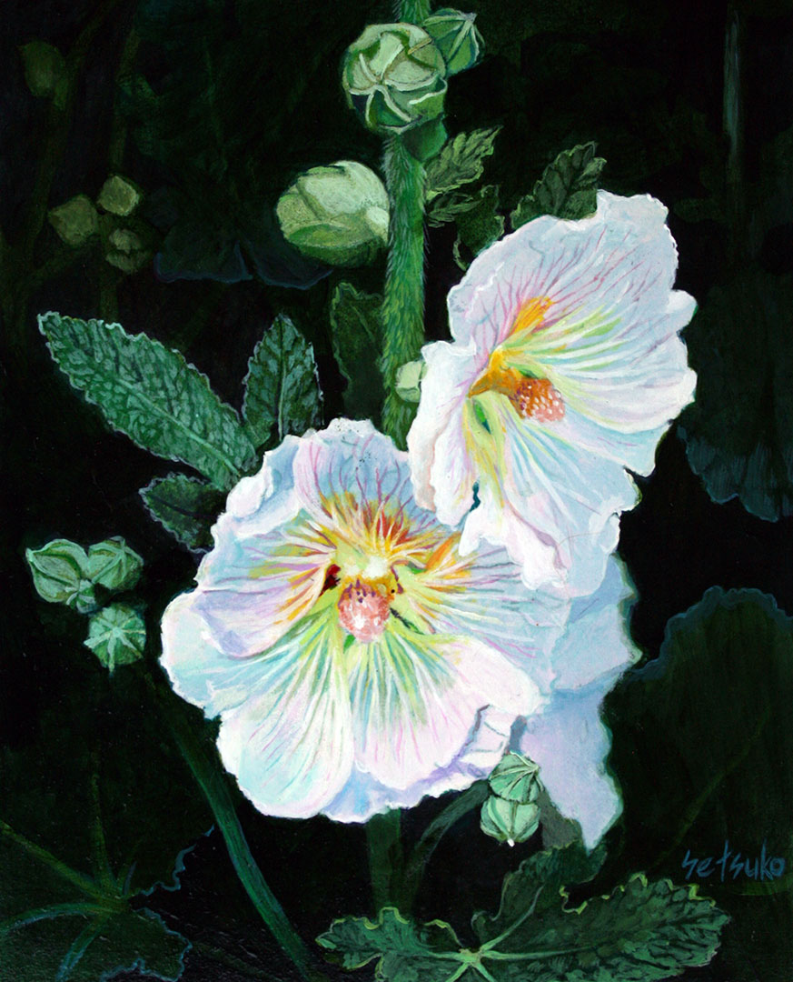 When I was a little kid, my mother bought me a toy garden. It consisted of a lot of different plants, flowers, and all other garden necessities. It was quite delicate and detailed. The flower parts are separated from green stem parts. I could attach any flowers to any plants. I have not seen this beautiful and rather sophisticated toys in anywhere. As the matter of fact, as far as I know, I was the only child who had this toy in my neighborhood. I was kind of obsessed by this garden for a quite long time. By press the center of the flat plants with the needle type tool into the hole of the ground, it stand up and ready to accept the flower parts. There were at least twenty different flowers and shrubs. The hollyhocks were my favorite tall flowers in my little garden. I always planted…placed the hollyhocks next to the fence and then somehow placed the tulips in front. Then place the rose bush. Of course one side is with yellow flowers and the other with pink. There were also small bricks which was probably a half of the finger nail size. They could be used to border the flower bed or walk way. It was such a beautiful garden I created. It is very strange to recall such a long time ago memory….much more than a half century ago. The Hollyhock became a time machine and sent me back to be a seven years old kid again.