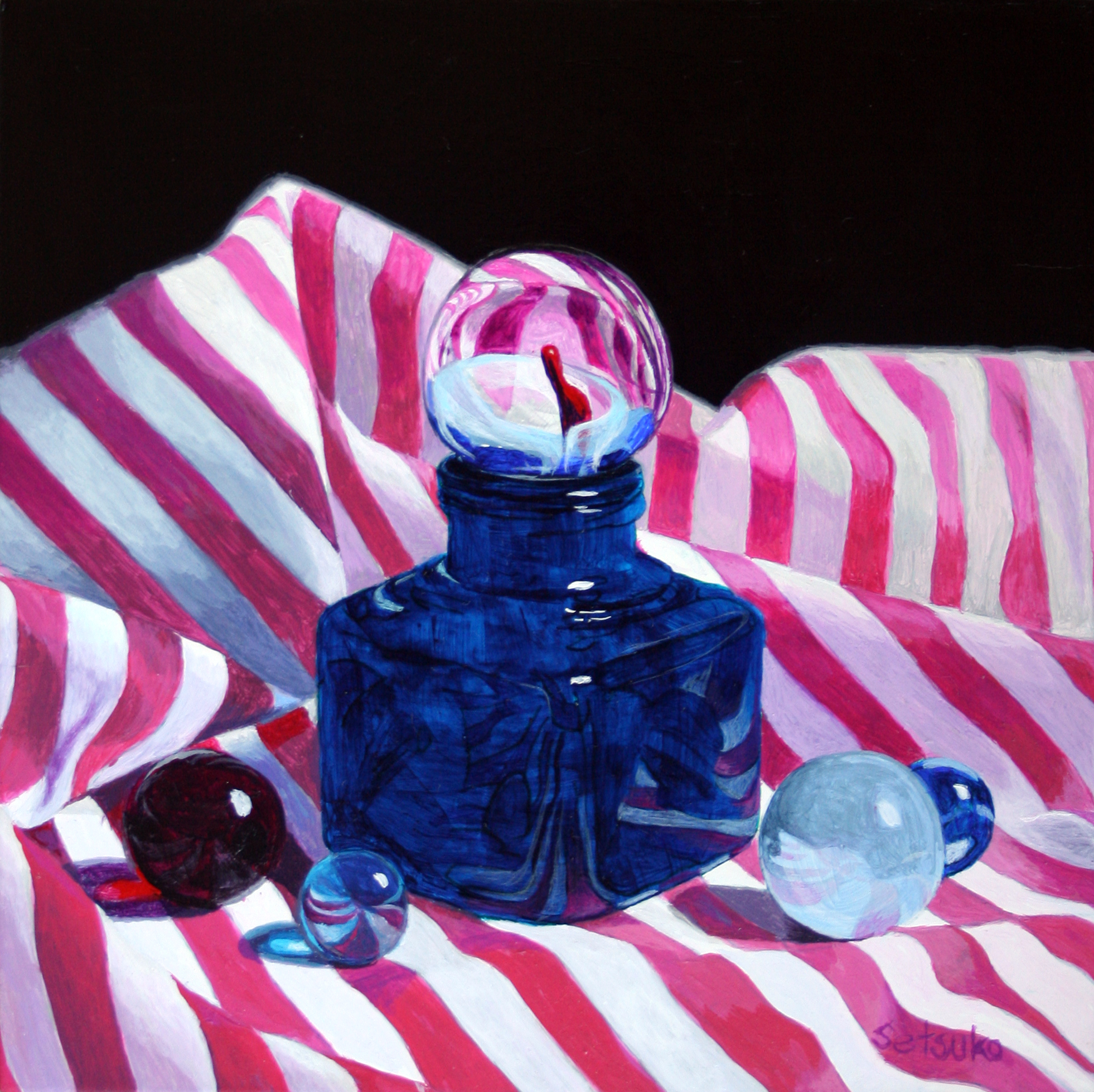I started to use a gessoed board and like this kind very much. Instead of simple thin board, this has the back supports. Because I really like what I experienced, I purchased totally 9 more panels which sizes are up to 12″ x 16″. I sanded and gessoed 5 layers, the panels became very smooth and easy to add the details. It was a quite job to prepare all 9 of them but it was worth spending the whole day working for my painting supports. Oh! I also can paint side of the panels because I gessoed them too. The patterns of this pink strips continue to the four sides of the panel and requires no frame. How cool is that!