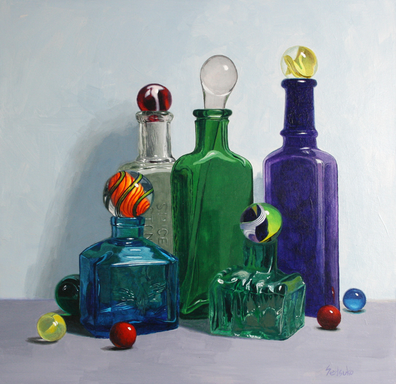 I did not think so much about where the marbles go when I set this composition. There is no unity concerning to the color. But it turned out to be fun.