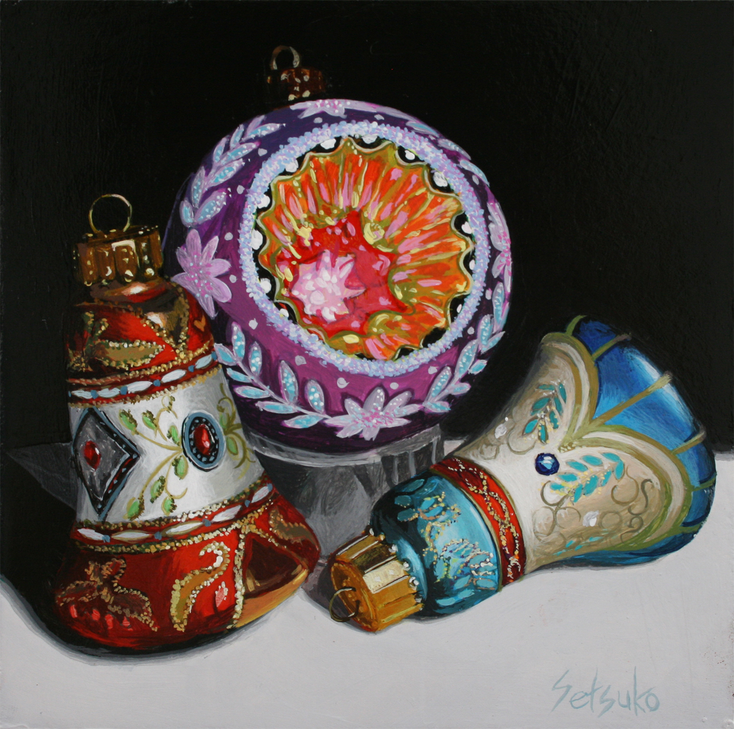 We used to have a beautiful Christmas tree every year when our child was little. Since she is now grown up and has her own place, we no longer set up a tree any more. Partially because we have three cats…very active cats and setting up a tree is a kind of not safe. But I still love to see those beautiful ornaments here and there in our home. I took them out from the boxes and place wherever I think they look good. Even painting them is fun. I have three more ornaments painting started on my desk. I love this season of the year.