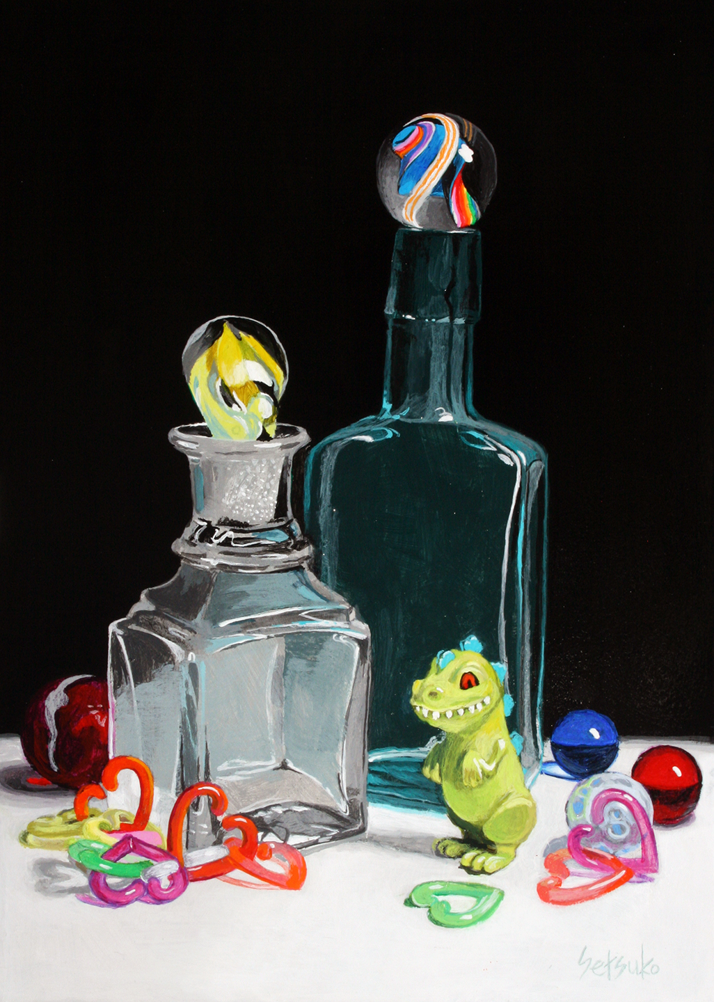 I have just read Jurassic Park by Michael Crichton. It was quite entertaining. So I added a little dinosaur to my painting. I do not remember where this little guy came from, but just sitting on my desk for a while…like 20 years….my goodness…I am surrounded by so many little things and love them.
