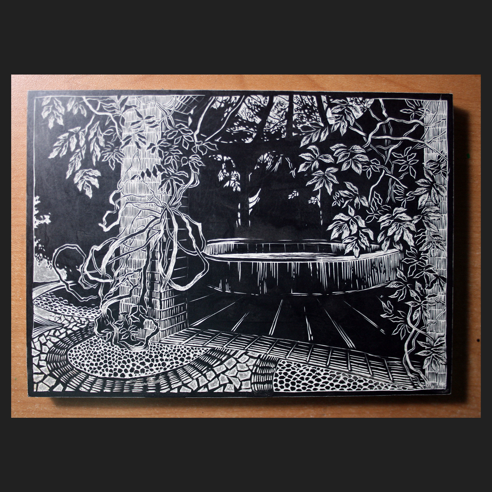 I think I finished this block. I like to add more markings, but if I do, the image will be very confusing. So I need to stop. Now I like to print this block and see if the image actually works or not. Unfortunately I used up all my paper for Spolet show and ordered paper I like on last Friday. Dick Brick said that I need to wait until tomorrow. OK…but I am ready to print!