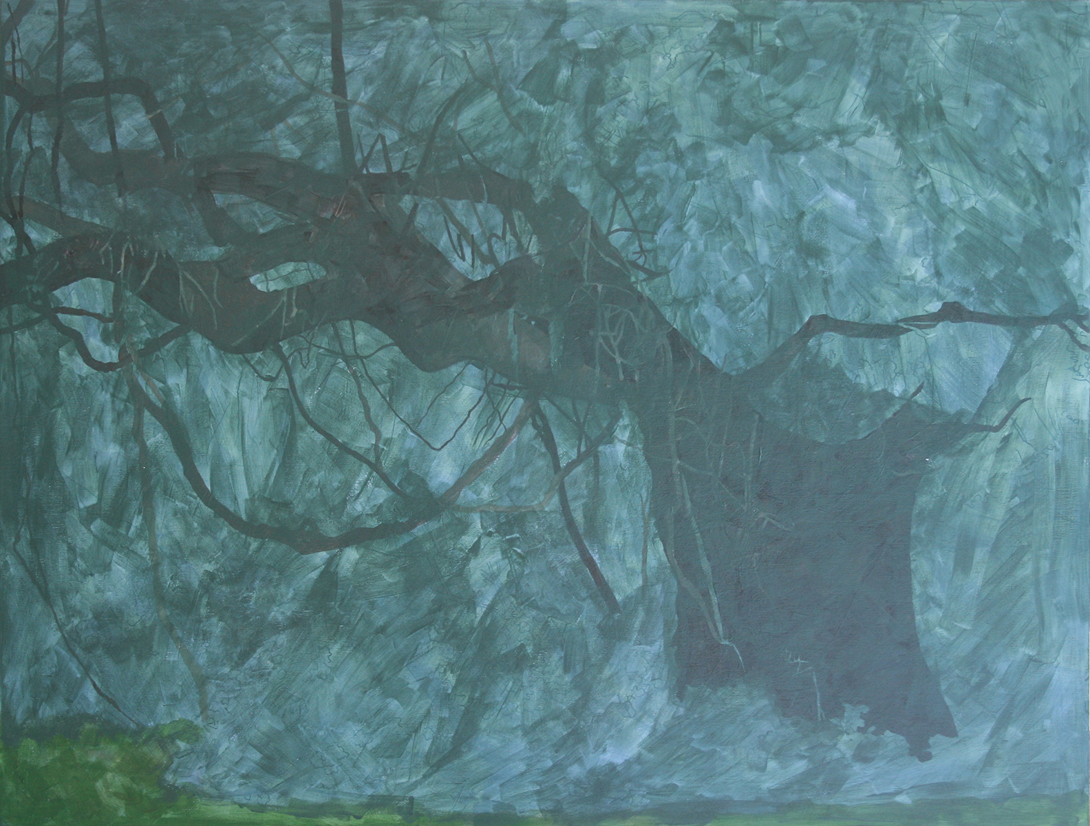As the first step I like to cover the entire surface with the some medium value color with the basic map of the image. I do not like to see white background seeing through every time I place the color. White always create the dramatic contrast with any hues and deceive my eye. But I regret a little selecting Blue Green for the base color because Blue usually sneaking up the layers and makes the final image rather gloomy. Now I need to be very careful. I am going to work on this image today and see what will happen.