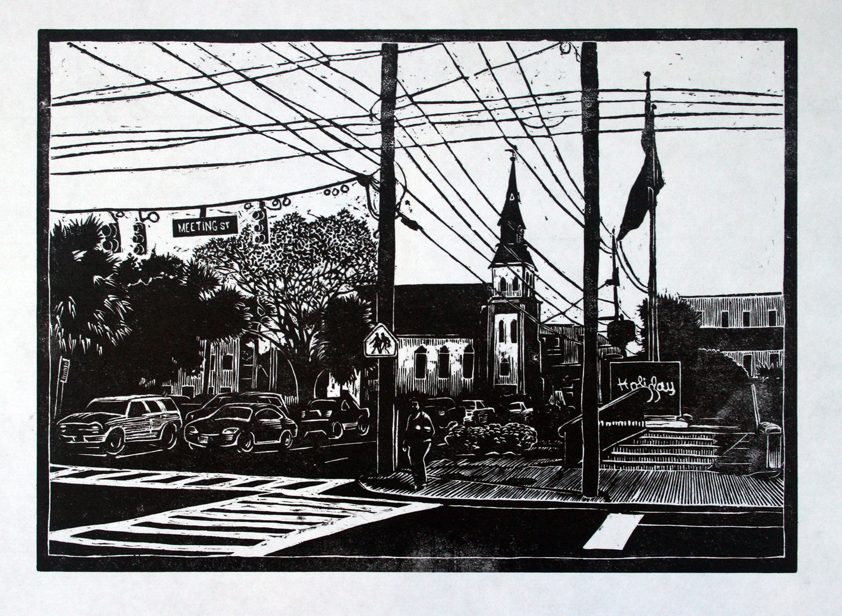 This is the corner between Meeting and Calhoun streets, downtown Charleston. It is rare to see those electric lines in the sky these days. I was quite fascinated by the abstract quality in the design.